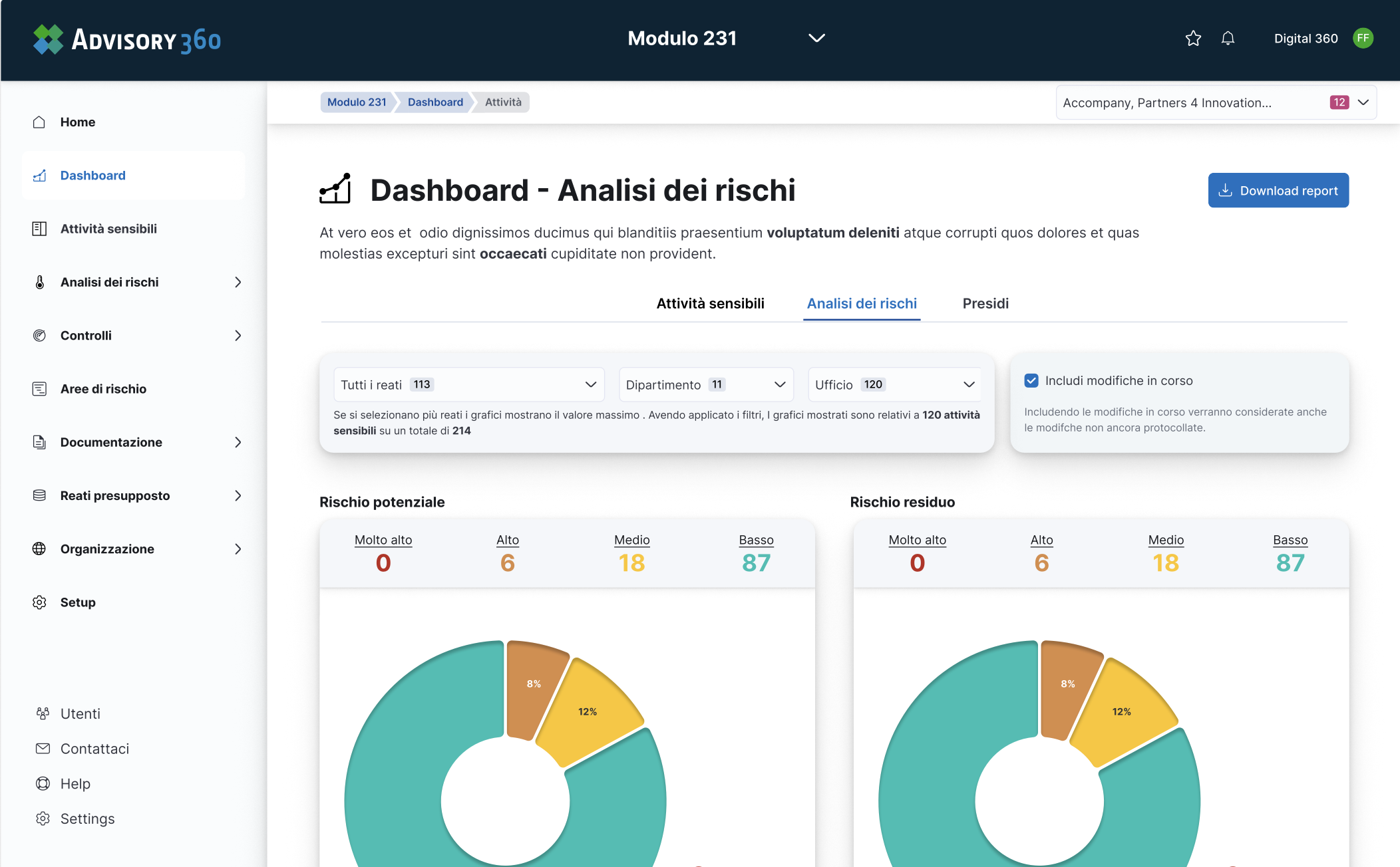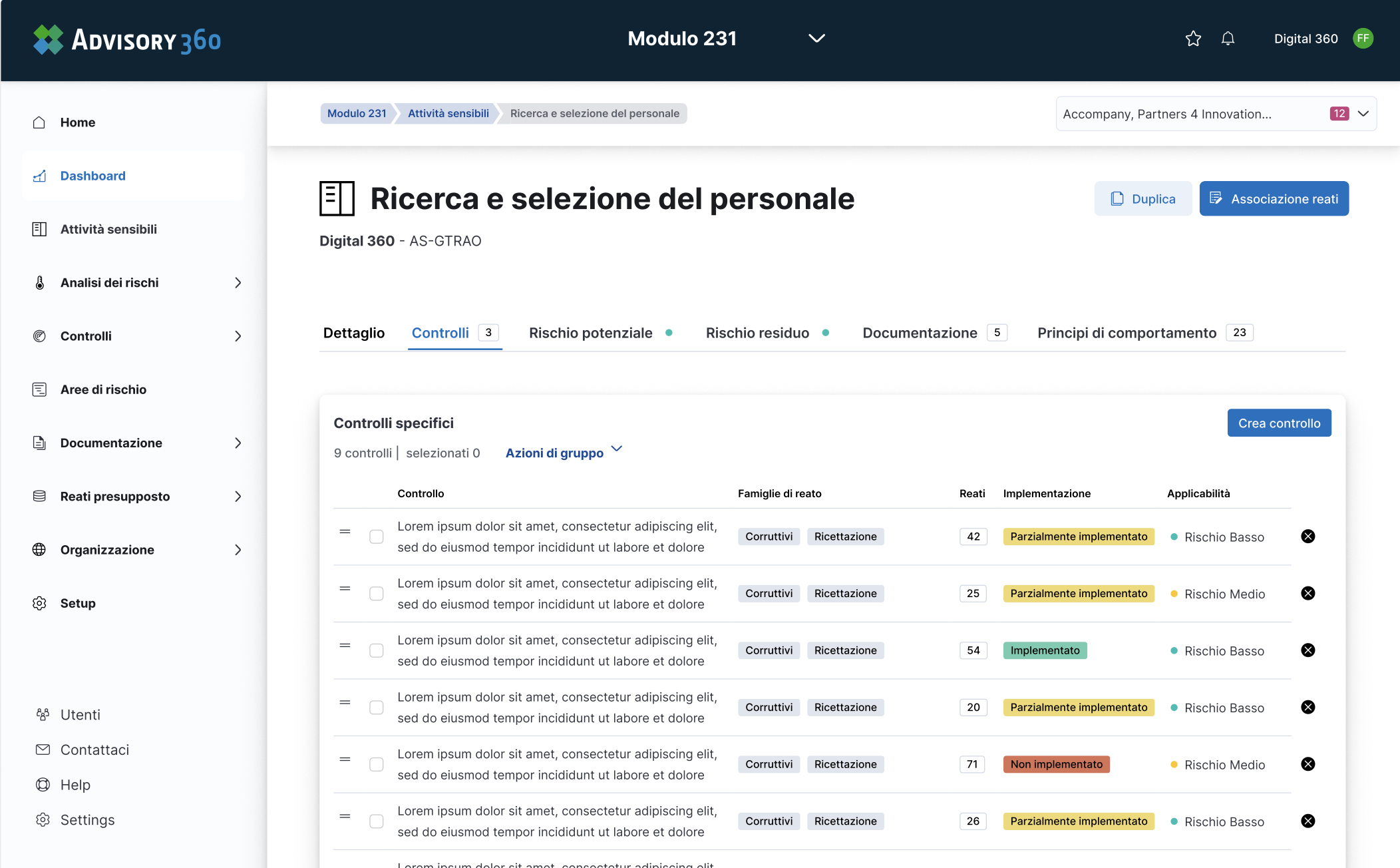 Potrai effettuare, per ciascuna attività sensibile, un'analisi del rischio potenziale e residuo